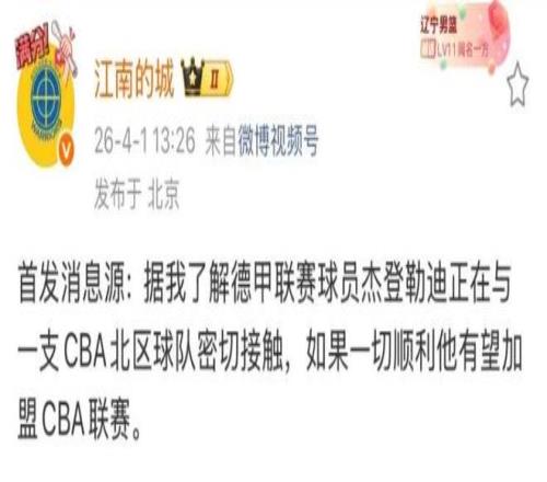 北京时间4月1日,据媒体人“江南的城”透露,德甲篮球联赛球员杰登-勒迪正在与一支CBA北区球队密切接触。“江南...