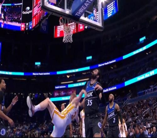 比赛末节,比塔泽在防守中从身后一把拉下空中的兰代尔,致其膝盖着。
