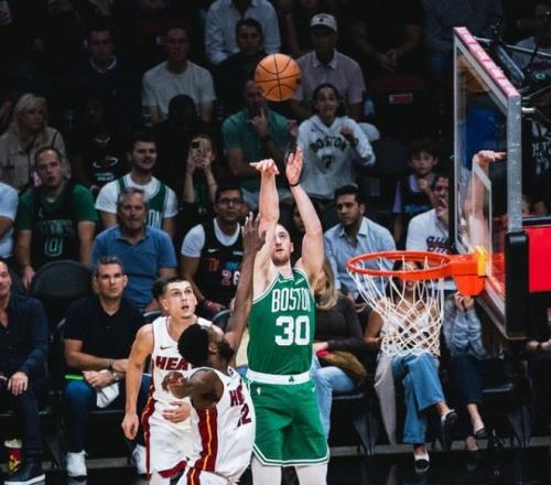在塔图姆的梳理之下,凯尔特人也打出了自己标志性的整体进攻,其中杰伦布朗砍下了全队最高的43分,豪泽则成为了绿军此战最稳的三分炮台,外线7投5中飙下了23分,为球队攻克迈阿密立下了汗马功劳。