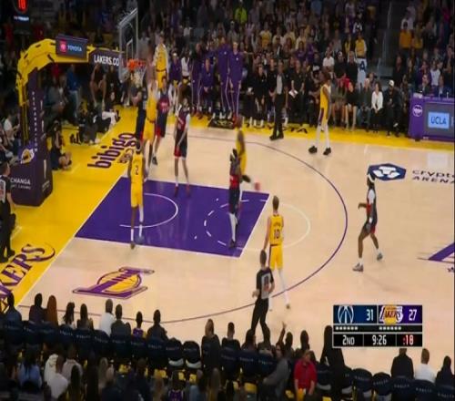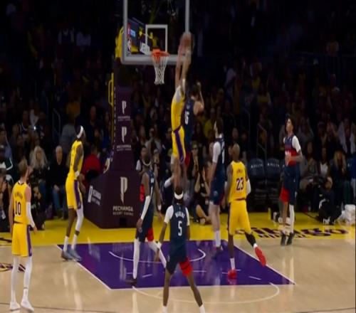 摧枯拉朽!詹姆斯送长传海斯接球快下一飞冲天双手暴力灌篮