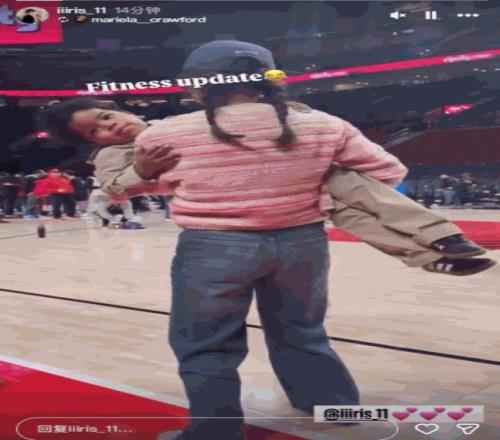 体育播报3月31日宣 此前,杨瀚森女友在社媒晒出自己抱着利拉德儿子在场边转圈圈的动态。