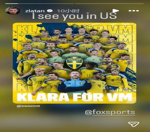 2026年美加墨世界杯欧洲区预选赛附加赛决赛,瑞典队3-2力克波兰队晋级正赛。赛后,瑞典传奇球星伊布晒出瑞典队的海报,并配文:美国见。